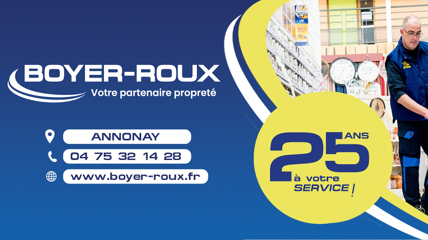 Boyer-Roux est une entreprise de nettoyage basée à Annonay. Depuis plus de 25 ans, nous intervenons auprès des professionnels de secteurs variés : secteur tertiaire, industrie, grandes surfaces, santé et éducation, copropriétés, agroalimentaire, vitrerie, hôtellerie et loisirs.