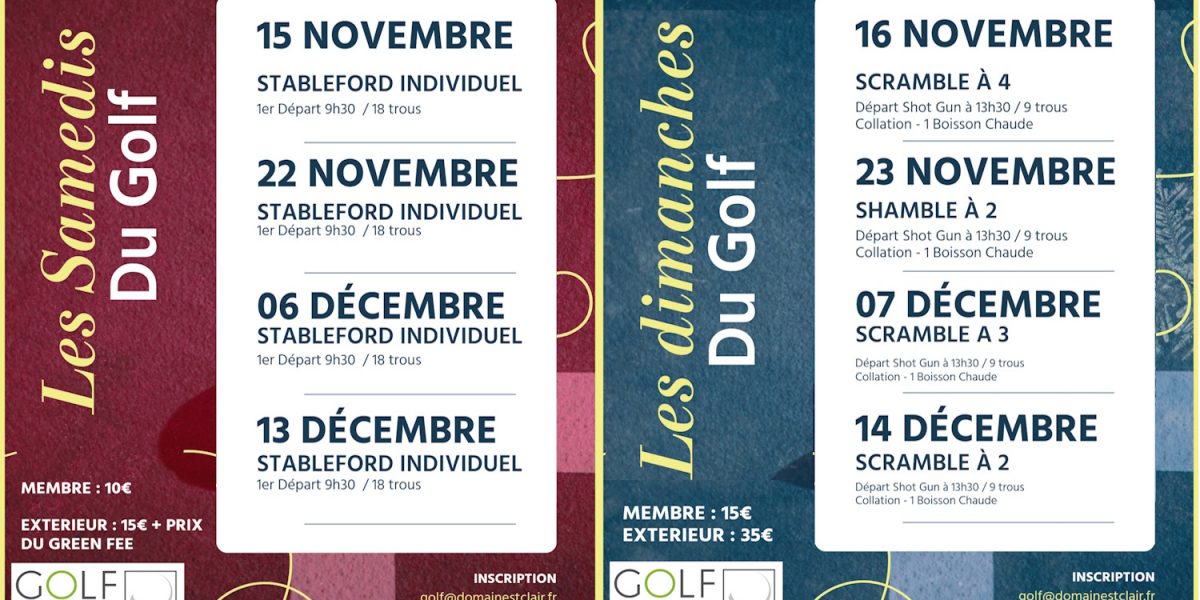 Vous avez jusqu’au 26 Janvier pour déposer vos candidatures, soit par mail à asgolfstclair@gmail.com, soit contacter un des membres de l’Association, ou encore vous inscrire sur le tableau affiché à l’accueil du Golf.