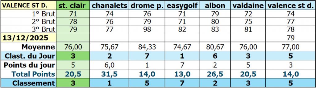 Au Classement du jour par club : St Clair est 3ème.