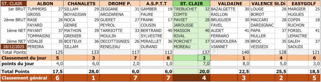 > Du jour par club : 1er : La Valdaine, suivi par St Clair; 3ème, Les Chanalets.