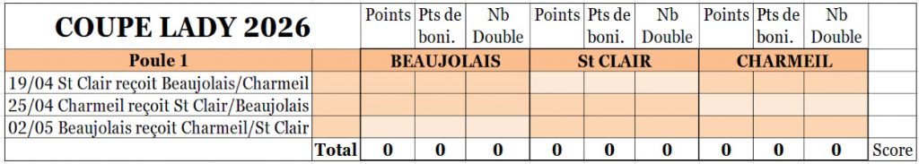 après sa victoire en préqualif. St Clair intègre la POULE 1 de la coupe LADY 2026