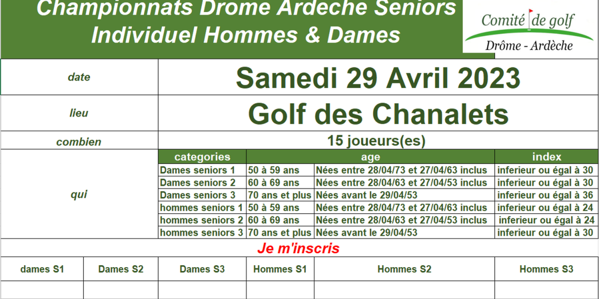 Finale de l’Hivernale « Séniors » 2022 / 2023 : le jeudi 23 février 2023 au golf du domaine de Saint Clair en en Match-play « 4 Balles meilleure balle ».